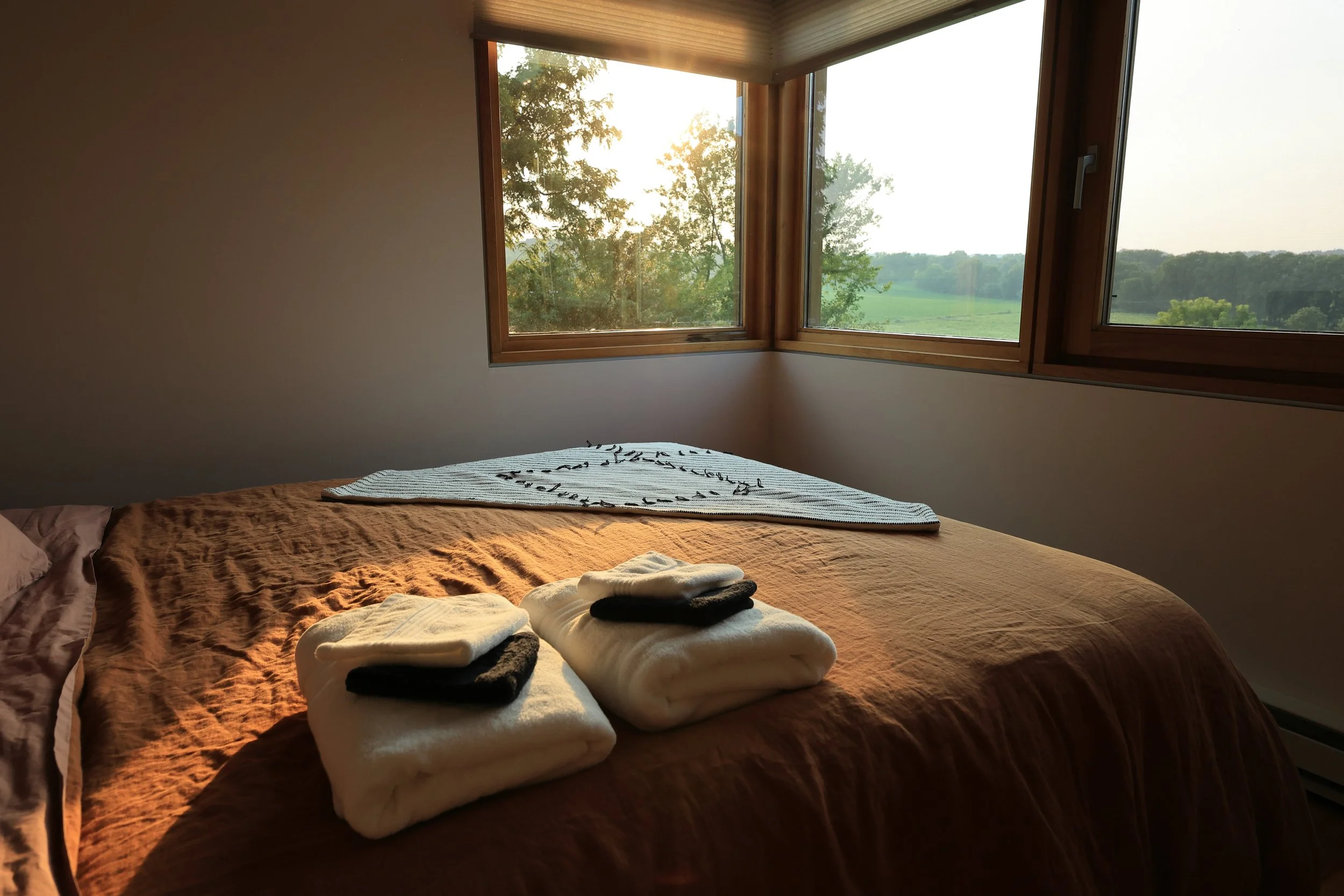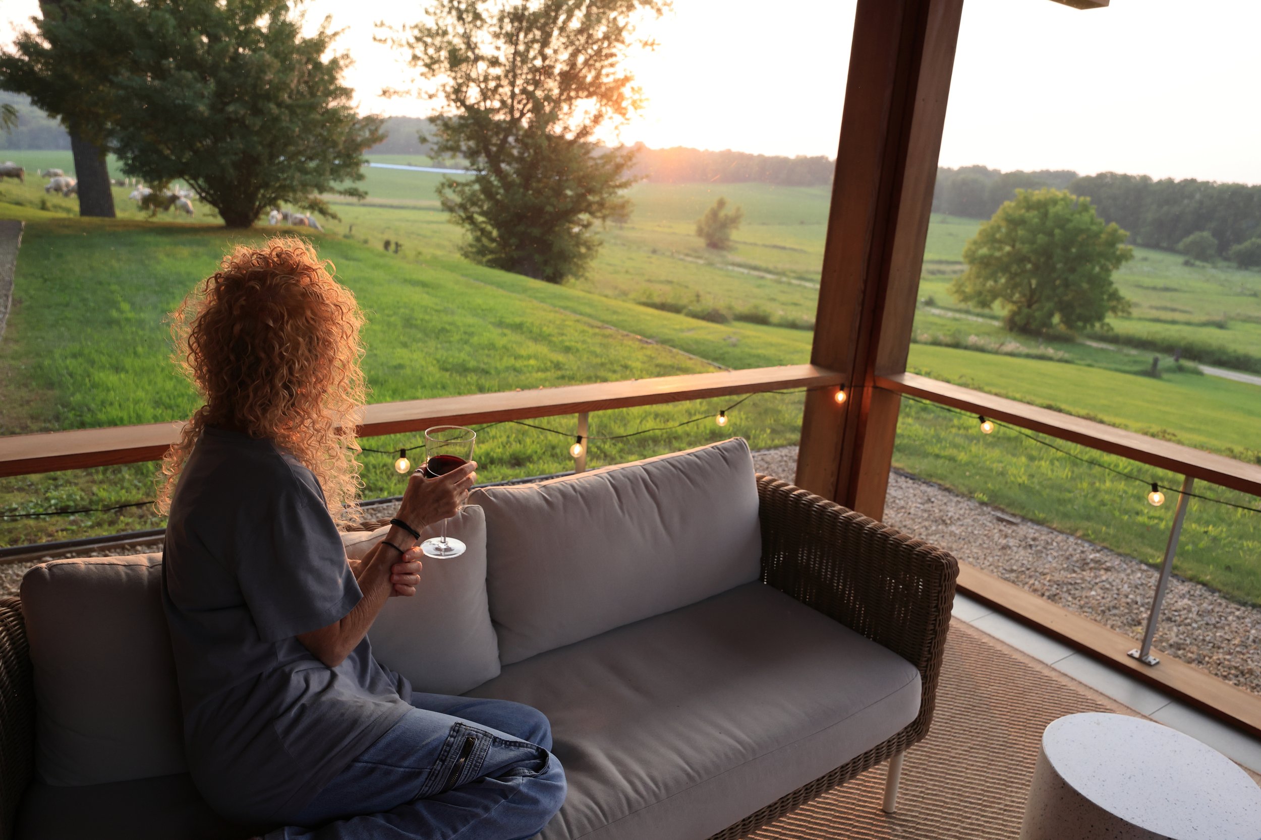 Just below the crest at Hillside Pastures, south of the Wisconsin River, the Elderflower Retreat overlooks a mature silvopasture where partner Seven Seeds raises grass-fed organic beef. Guests can enjoy a hike up the tree-lined ridge overlooking the River Valley. Within view is Frank Lloyd Wright’s Taliesin, a UNESCO World Heritage Site. Nearby, take in an outdoor show at the American Players Theater in Spring Green, WI.